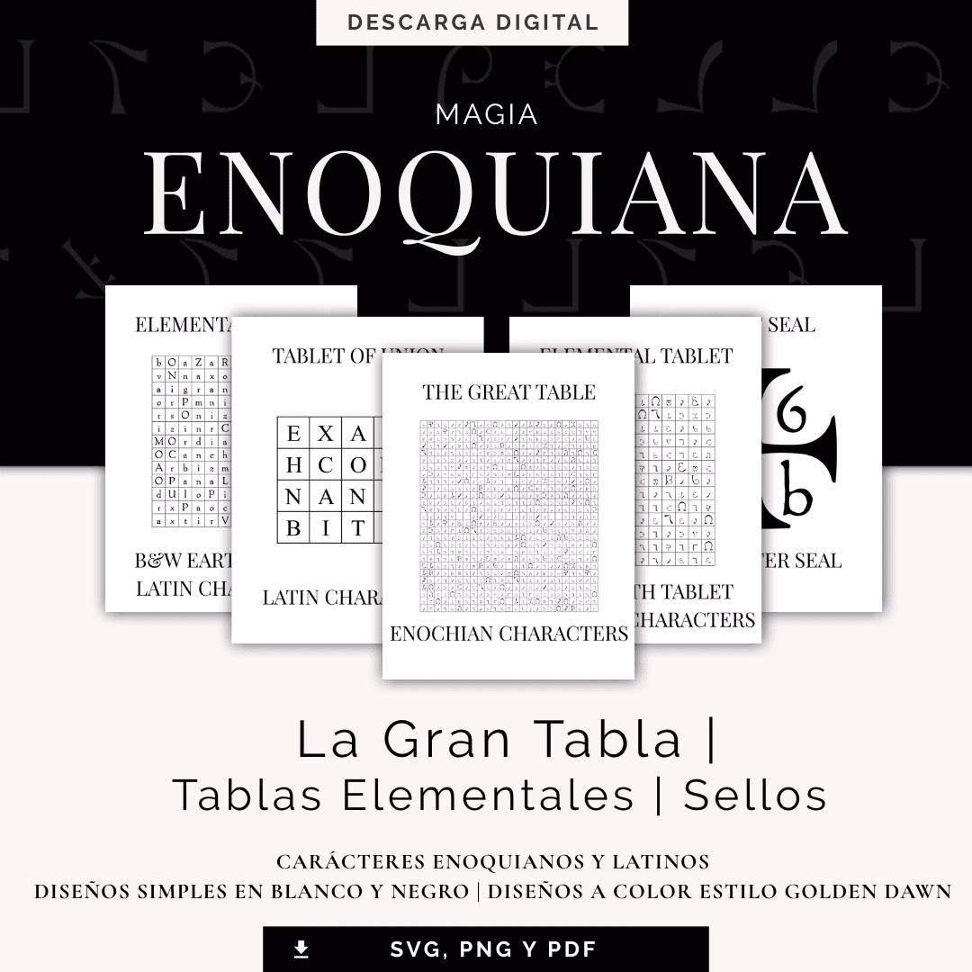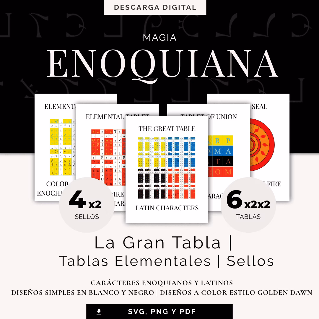 Todas las tablas están diseñadas tanto en versiones con caracteres latinos como enoquianos.